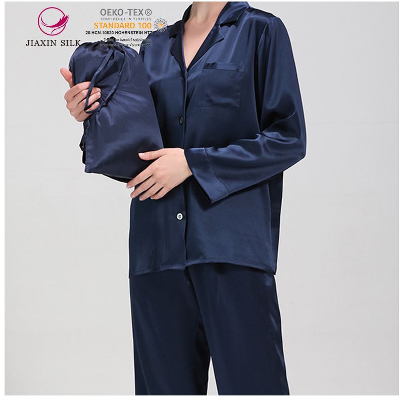 Този дамски комплект от копринена пижама' е изработен от издръжлива 19 momme избрана висококачествена 6A клас чернична коприна с блясък на charmeuse