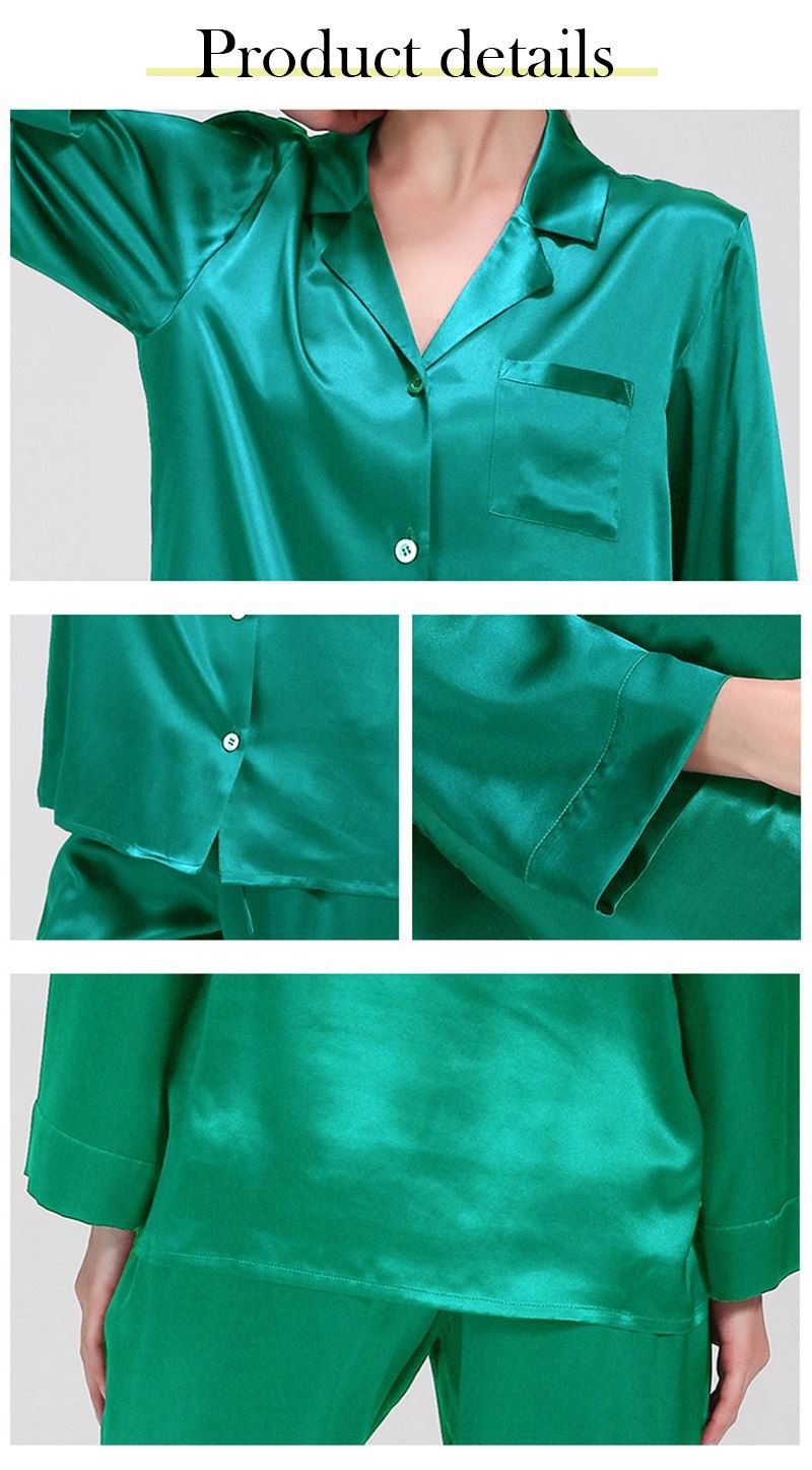 | Ежедневен женски комплект от копринена пижама, дълга зелена | |